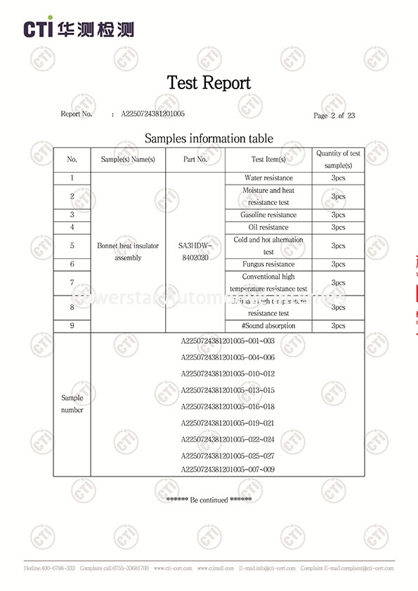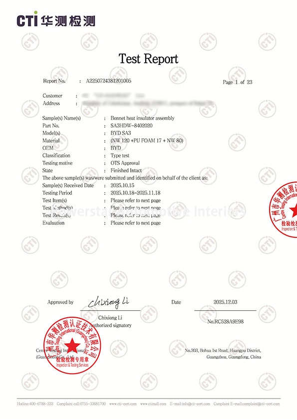 • Products > Auditing & certification > Bonnet heat insulator assembly